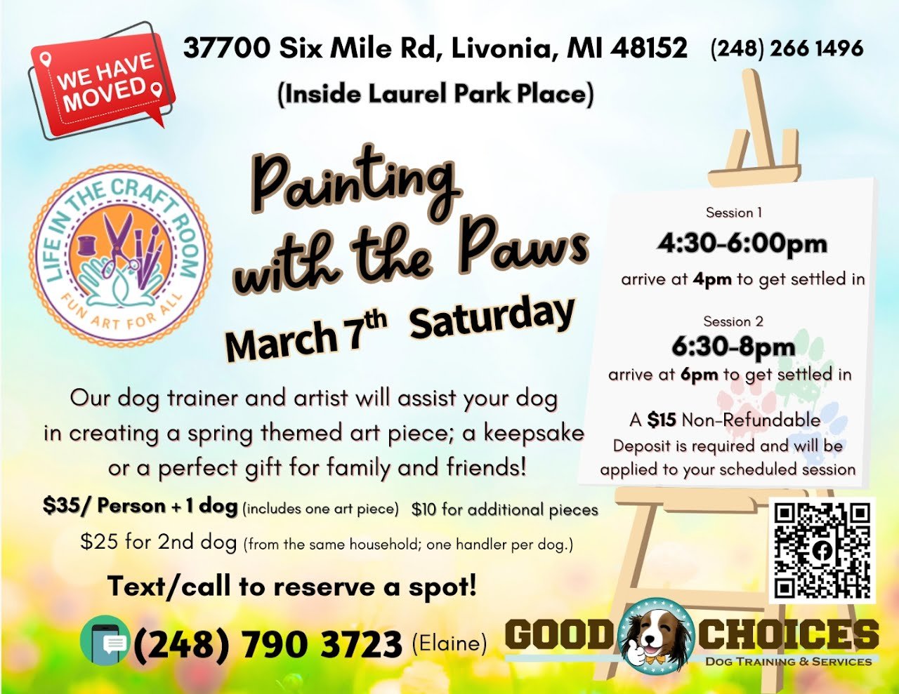 Join us for a unique and enjoyable artistic experience centered around our furry friends! Your pet will paint with its paws to show off its artistic talent as the next Paw-casso, and then you can dazzle the artwork with whatever you imagine to create with the assistance of our artist.