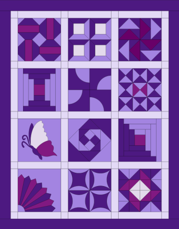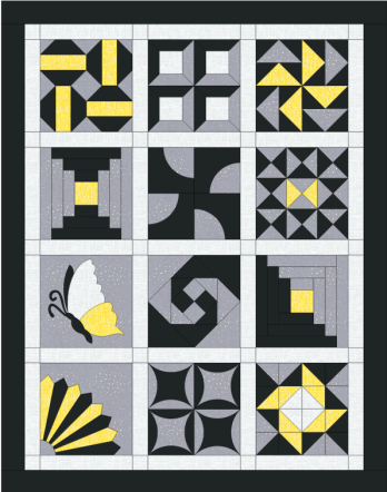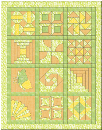 Quilt dimensions: Throw size 50in x 64in with monthly blocks finishing at 12in square.